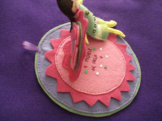 El passat diumenge va ser la festa de la meva cunyada i el meu germà em va demanar si li podia fer un val per un regal que l'hi havia de fer... em va dir que li fes una postaleta o alguna cosa ràpida i mona amb l'ordinador. Però no m'agradava res del que provava i se'm va acudir fer un mandala de feltre amb sorpresa. Felicitats Francina!!